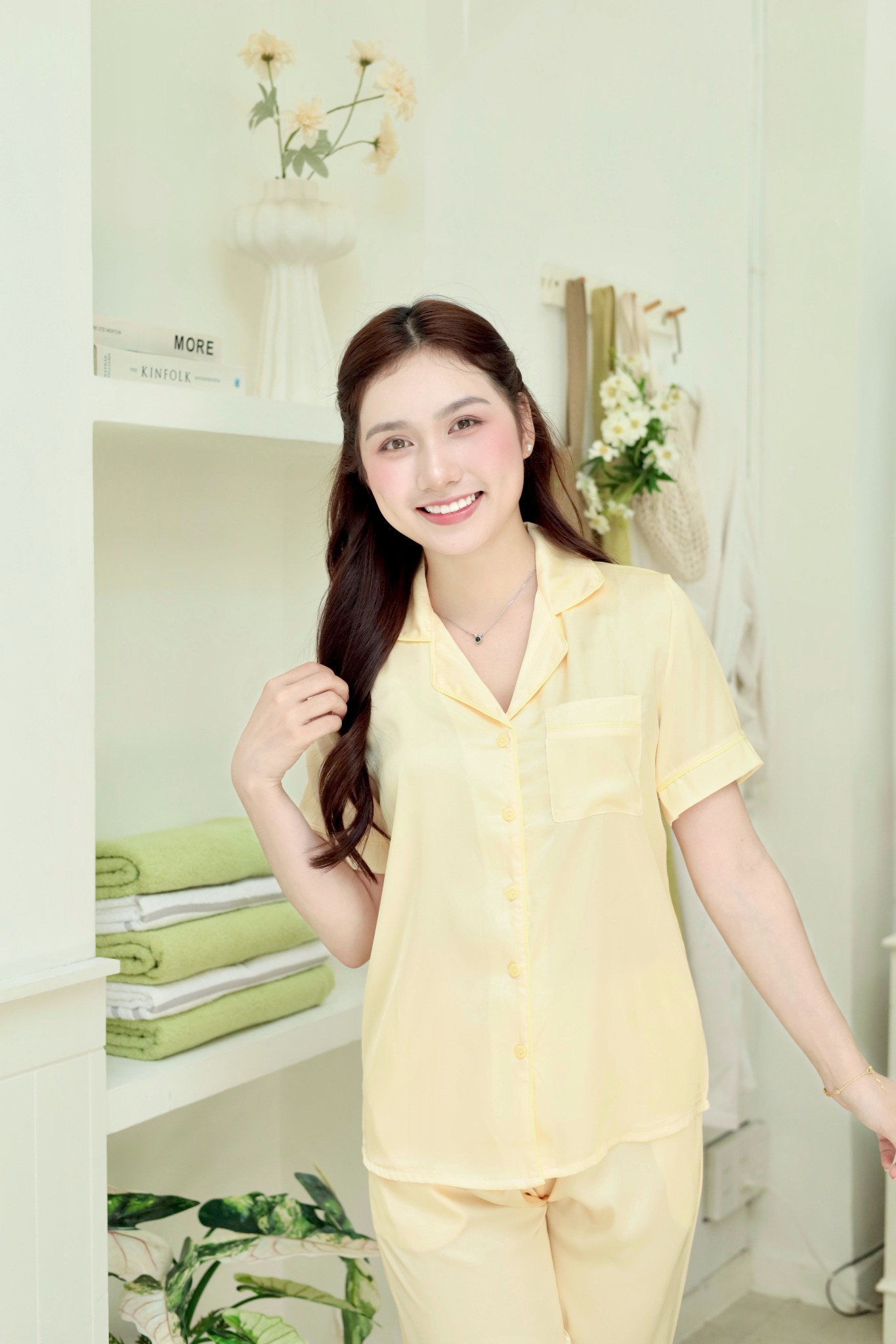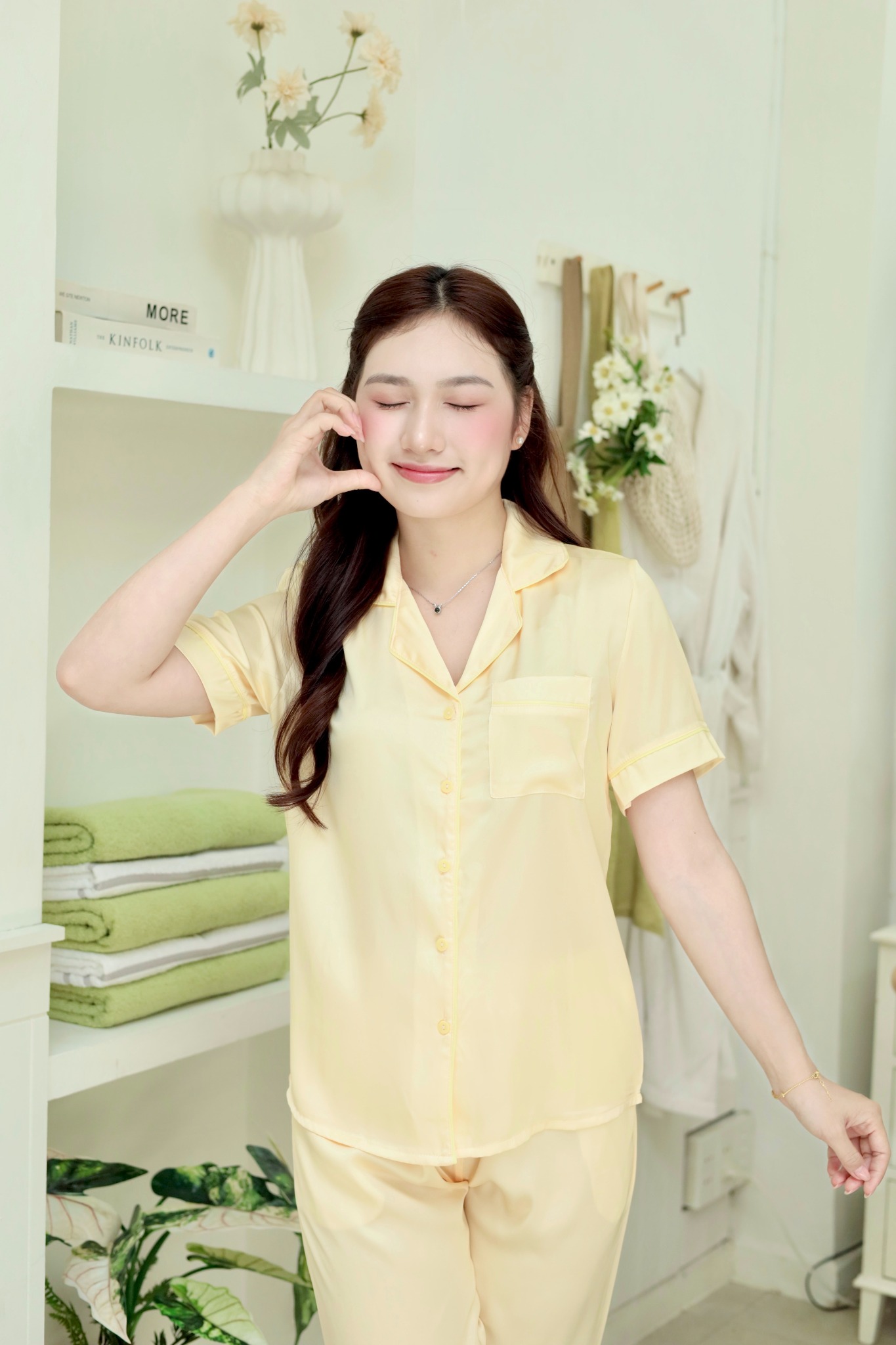 Pijama Lụa Latin trơn Satino TNQN - Yellow